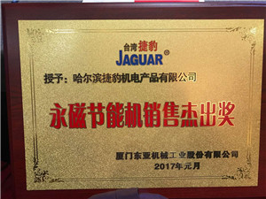 2017年元月,公司榮獲廈門東亞機(jī)械工業(yè)股份有限公司2016年度銷售先進(jìn)獎(jiǎng)及 永磁節(jié)能機(jī)杰出銷售獎(jiǎng) 兩項(xiàng)大獎(jiǎng)。